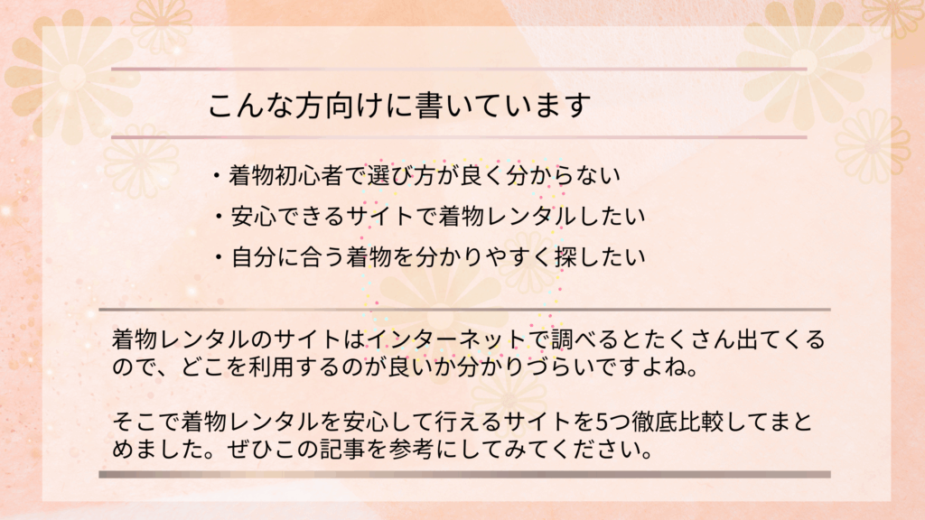 このサイトが、あなたの特別な一日を彩る素敵な一着を見つける手助けになれば嬉しいです。ぜひこの記事を活用して、自分にぴったりの着物レンタルを探してみてくださいね。